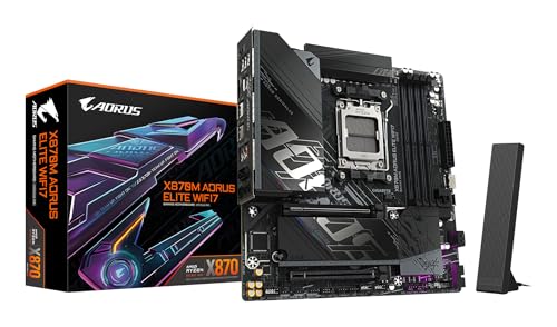 GIGABYTE X870M AORUS ELITE WIFI7 Carte Mere – Compatible avec les processeurs AMD Ryzen 9000 VRM numerique 14 2 2 phases jusqu a 8200 MHz DDR5 OC 1 x PCIe 5.0 1 x PCIe 4.0 Wi-Fi 7 LAN 2.5 GbE |