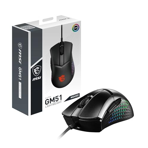 MSI Clutch GM51 Lightweight Souris Gaming - Capteur Optique- 26000 DPI Droitier Switches OMRON 60M Clics 6 Boutons Cable FriXionFree Latence 0125ms RGB Mystic Light 75g - Filaire |